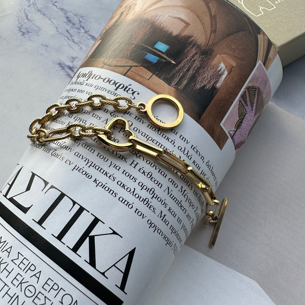 Βραχιόλι χειροποίητο με Αλυσίδα ατσάλινη με στοιχεία μάτια από σμάλτο. Το κόσμημα αποτελείται από ατσάλι επιχρυσωμένο 24Κ.